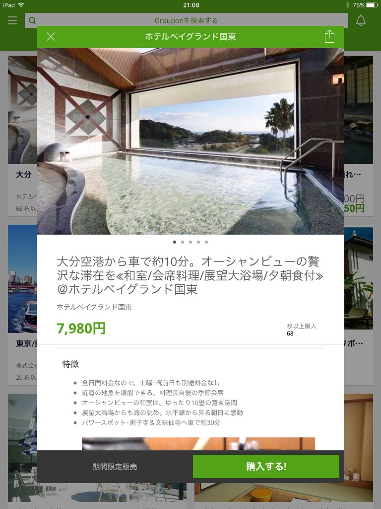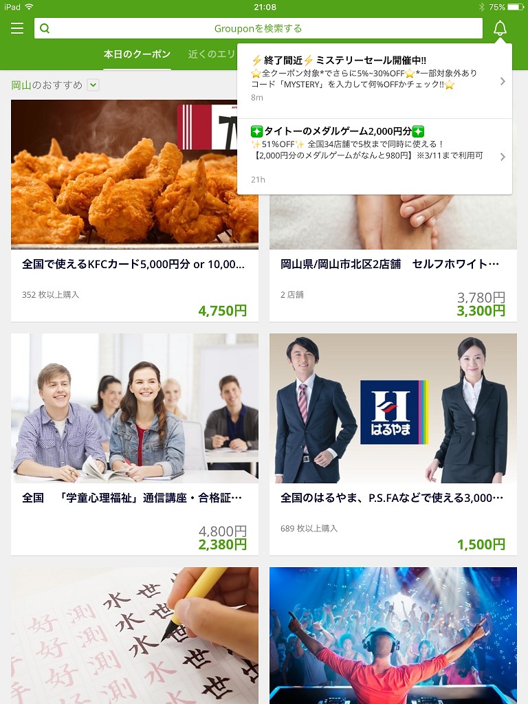 価格が割安でそれなりに質が良い商品情報を入手しようと思うと、今までならお店に行って店員に話を伺うなど、手間をかけなければなりませんでした。面倒さに負けて価格を妥協したこともしばしばあります。ですがこれからはアプリの時代で、このandroidで使えるGrouponは店員から入手するようなお得情報がアプリを起動するだけでたくさん掲載されているのです。