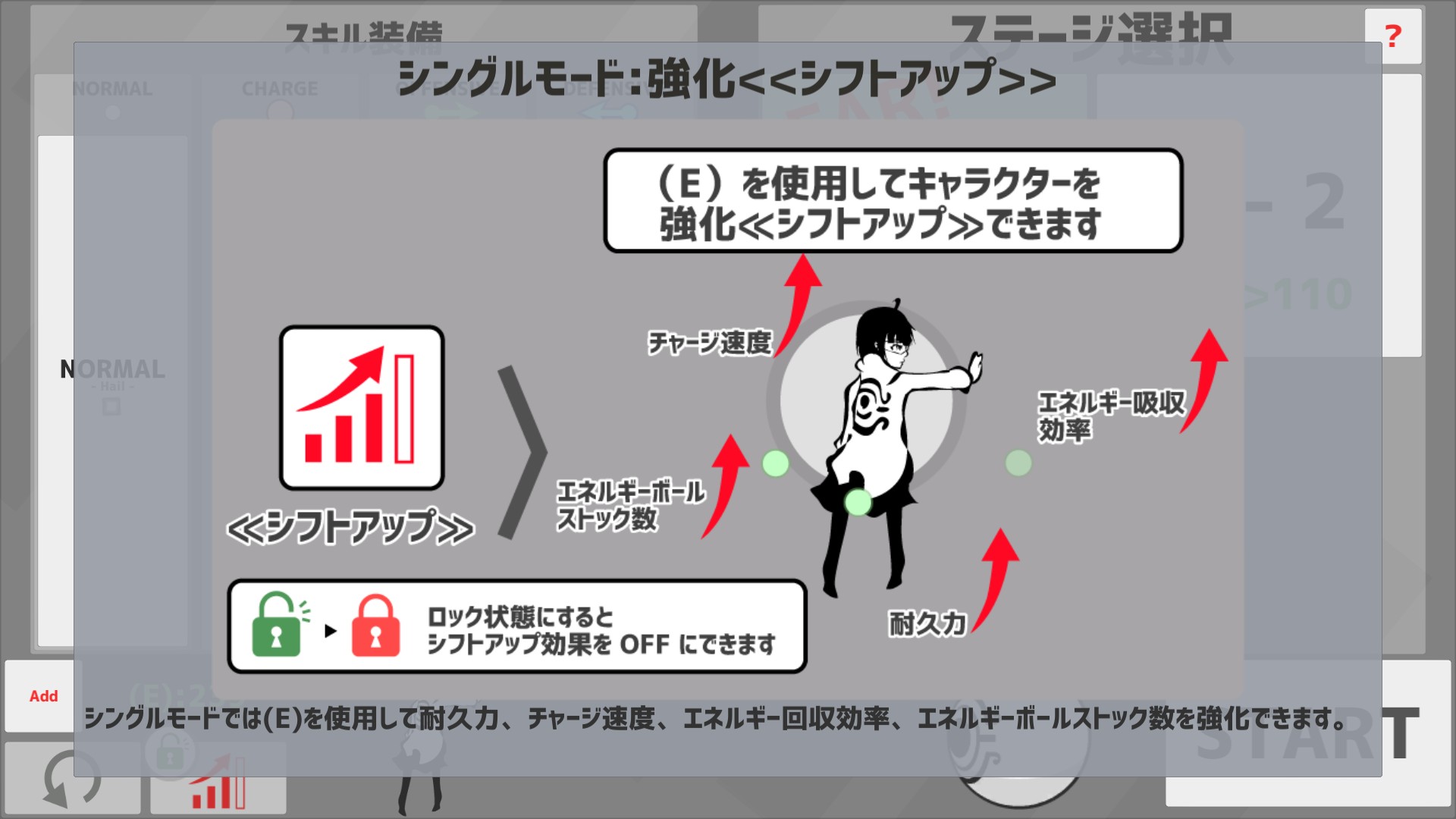 敵からドロップできるエネルギーを使って、プレイヤーである主人公を強化することが出来ますよ!