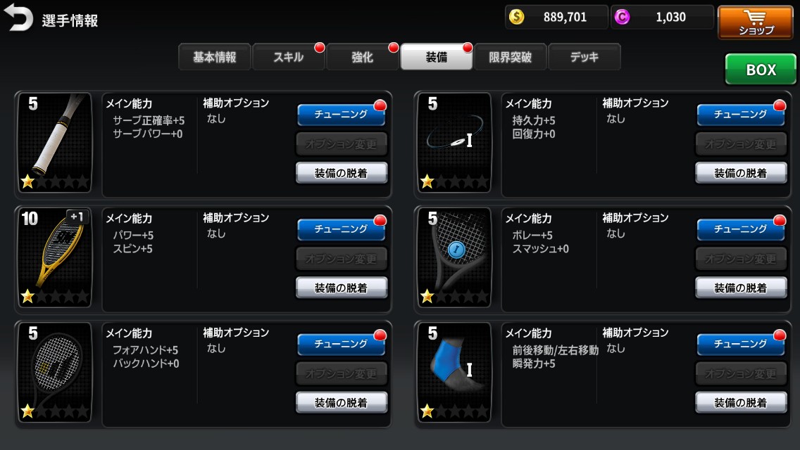 また、見た目だけでなく、キャラクターの装備や能力をスキルアップさせることができるので、比類ない自分だけのオリジナル選手を作ることができます。特にラケットに関しては、グリップの強化等、設定が細かくされているため、テニス経験者にとっては嬉しい要素だと思います。