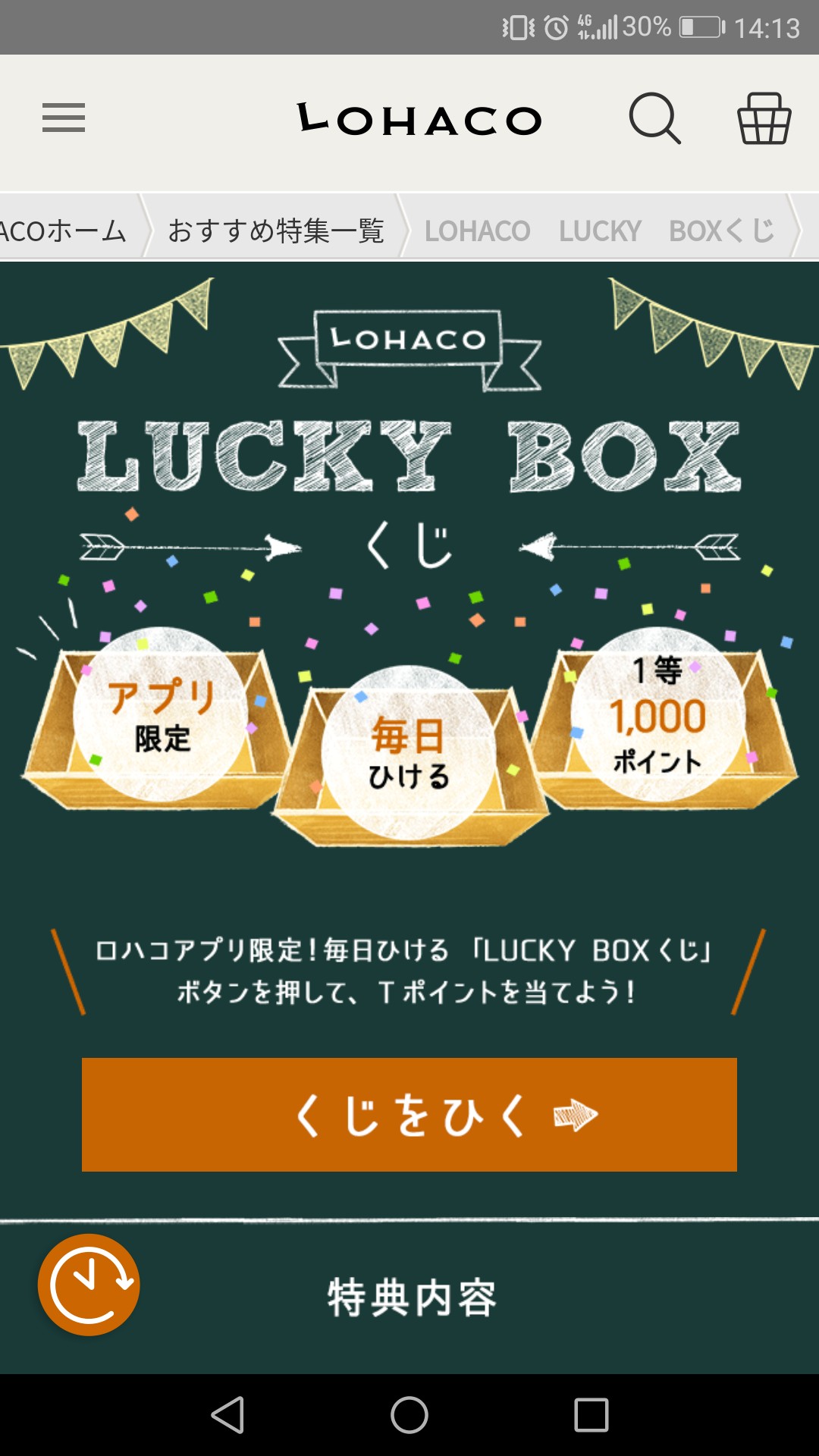 アプリ限定特典としてTポイントが抽選であたるアプリ限定くじが用意されているほか、アプリ限定ポイント増量キャンペーンやクーポン配布が不定期で行われることもあります。「LOHACO」でよりお得に買物がしたい方は「ロハコアプリ」をダウンロードしておけば損はないですよ。
