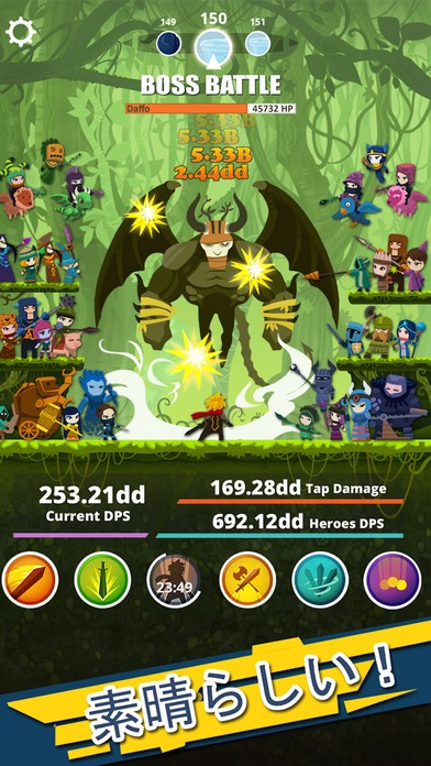 Tap Titanには2作目が出ています。前作に比べて更に放置しやすく面白いアプリになって帰ってきました。巨大な敵をタップ連打して倒すのはいつもの通りで、ペットとクランの機能が目立った追加要素です。