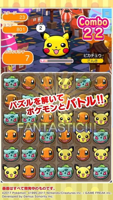 本来のポケモン要素もしっかりと入っています。ポケモンバトルをパズルで行うようになっていて、パズル部分は3マッチですから同じ種類のポケモンを3つ以上揃えて消していきます。