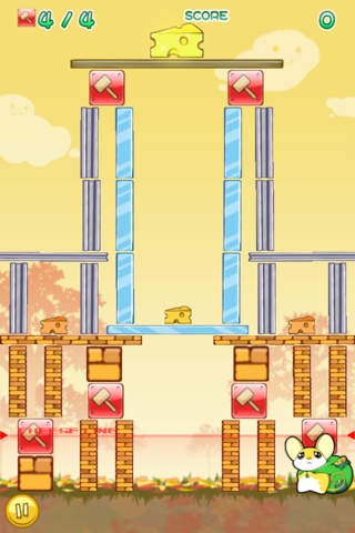 遊び方は簡単で柱の上に積み上げられているチーズを下に落とせばいいだけ。ただし柱を崩す回數には制限があり回數を超えてしまったり、チーズが画面外に落ちたりするとアウトです。