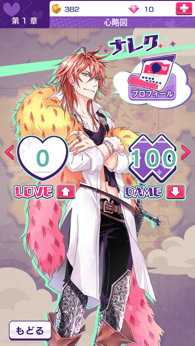 物語を進めてダメ王子達と恋愛をして、王子のダメ度を下げていく、メインの【ストーリー】のエンディングは『LOVE END』、『NORMAL END』、『DAME END』の3種類あります。ゲーム中、各王子達のLOVE度とDAME度をコントロールしたり、ミッションをクリアしていくことで、エンディングが変化していきます。