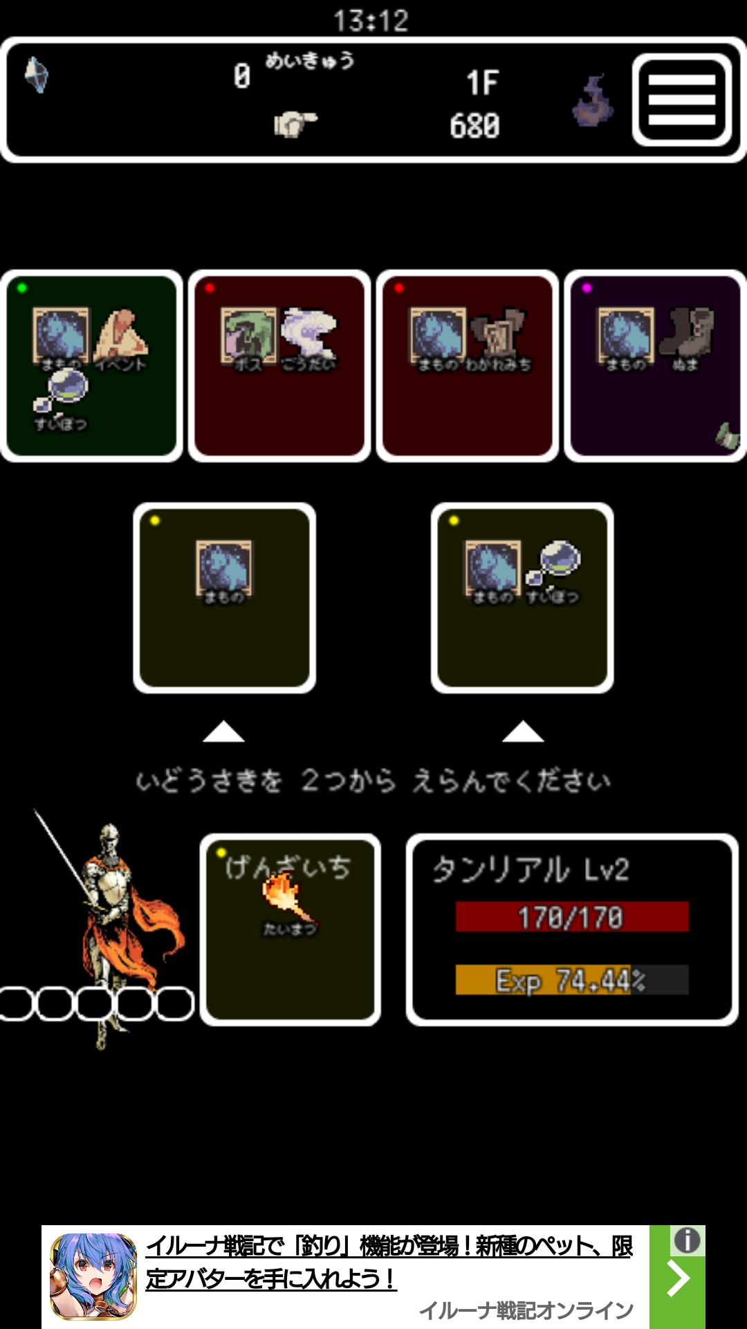 どこを探索するのかを選択しながら、ダンジョンを移動して色々と探っていきます。
