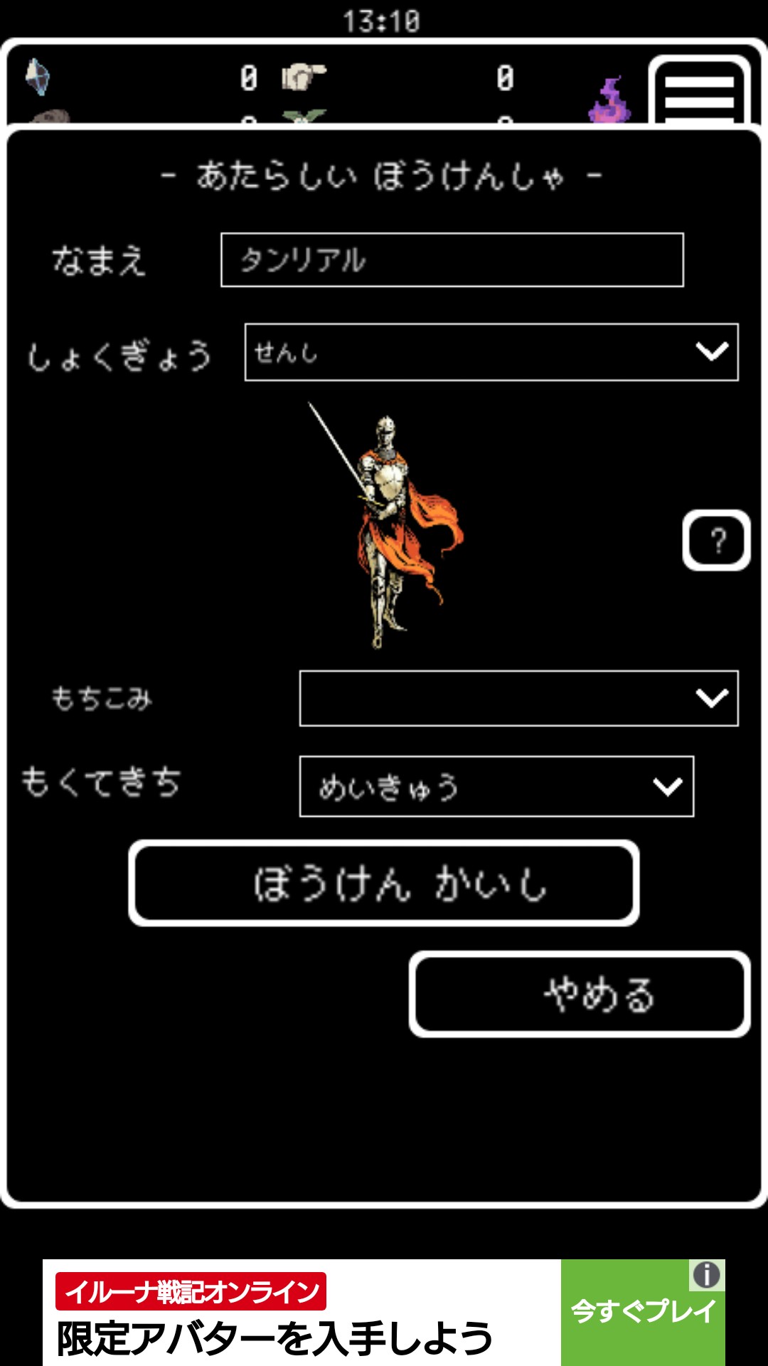 まずはダンジョンへと挑む「ぼうけんしゃ」を作成しましょう。