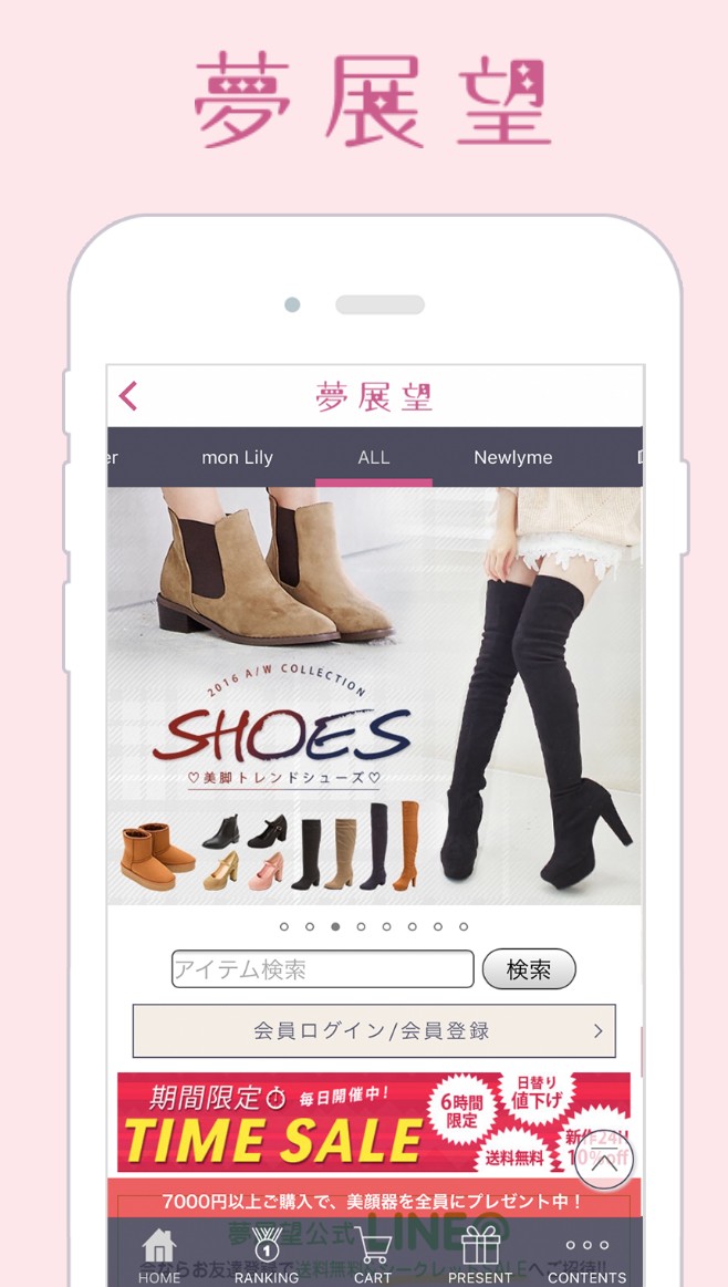 「夢展望公式アプリ」は、流行のアイテムをお買い得な値段でショッピングできる、女性向けのファッション通販アプリです。