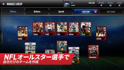 「Antonio Brown」、「Rob Gronkowski」などの現在のスター選手、や「Jerry Rice」のような伝説の名選手で最強のチームを作りましょう。