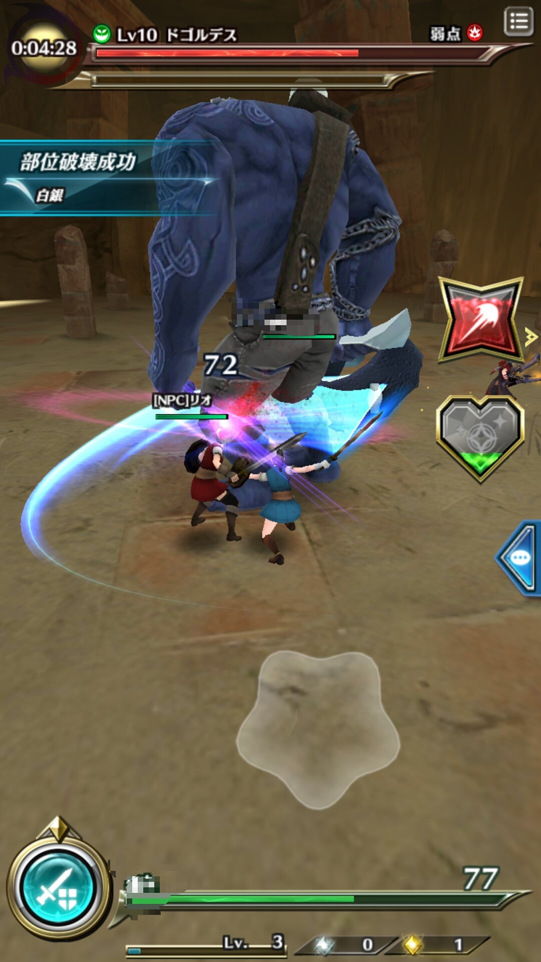 敵からの攻撃が厳しいときには画面長押しで敵の攻撃をガードできます。