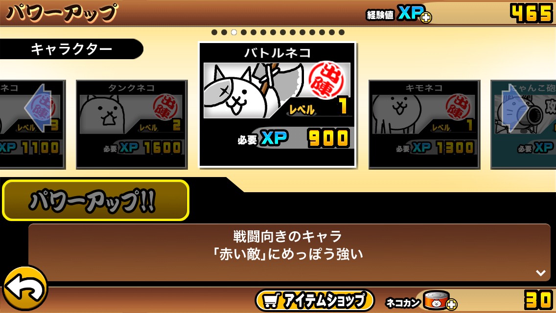 戦闘に直接参加するキャラクターだけでなく、働きネコやにゃんこ砲も強化することが出来ますので、バランス良く育てることが勝利への近道となるでしょう。