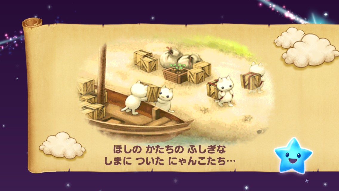 のどかな音楽と、時折聞こえるにゃんこのかわいい鳴き声。ほしの島には、今日もゆったりとした時間が流れています。