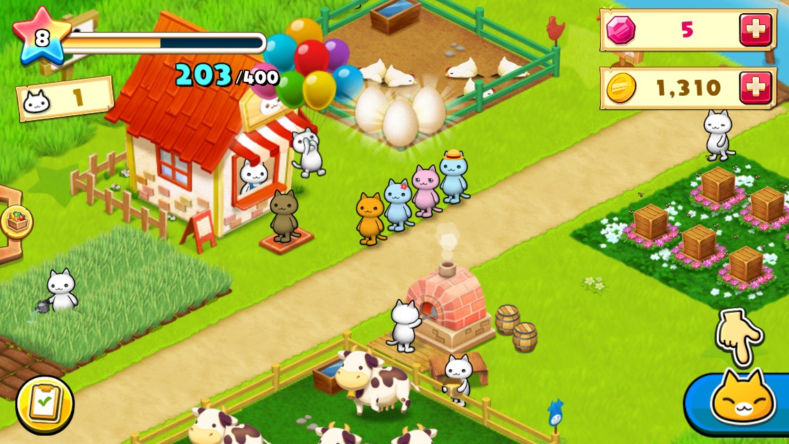 かわいいにゃんこに癒されながら、島づくりを楽しもう。