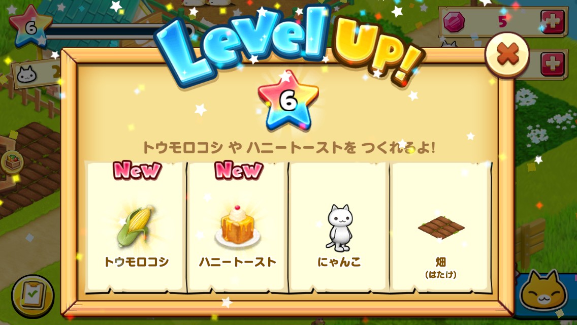 経験値と共に重要なものがコインで、畑や動物、設備などを購入する際に必要となります。