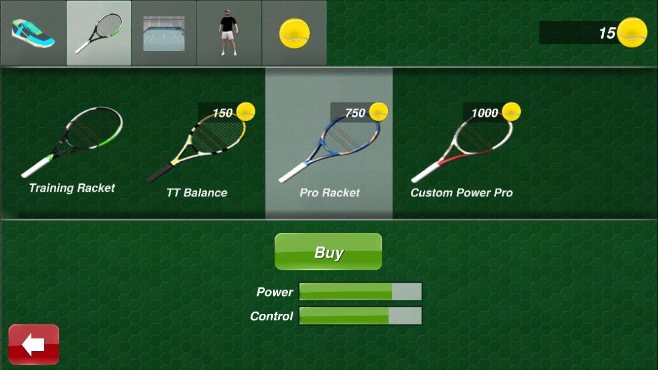 ショップ:ステータスを上げるスニーカーやラケットをボールで購入できます。ボールのみ課金アイテムになっています。