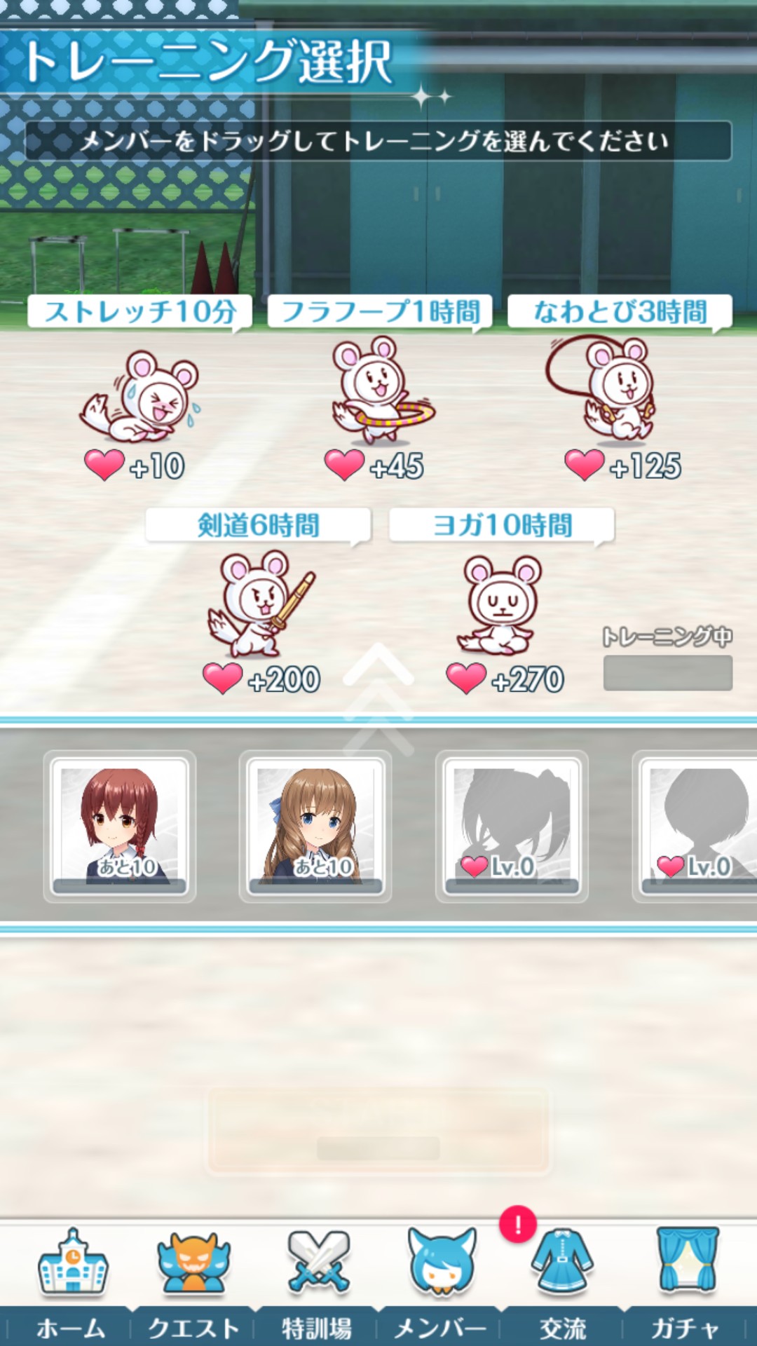 トレーニングをすることにより、メンバーと交流して芯密度を上げることができます。