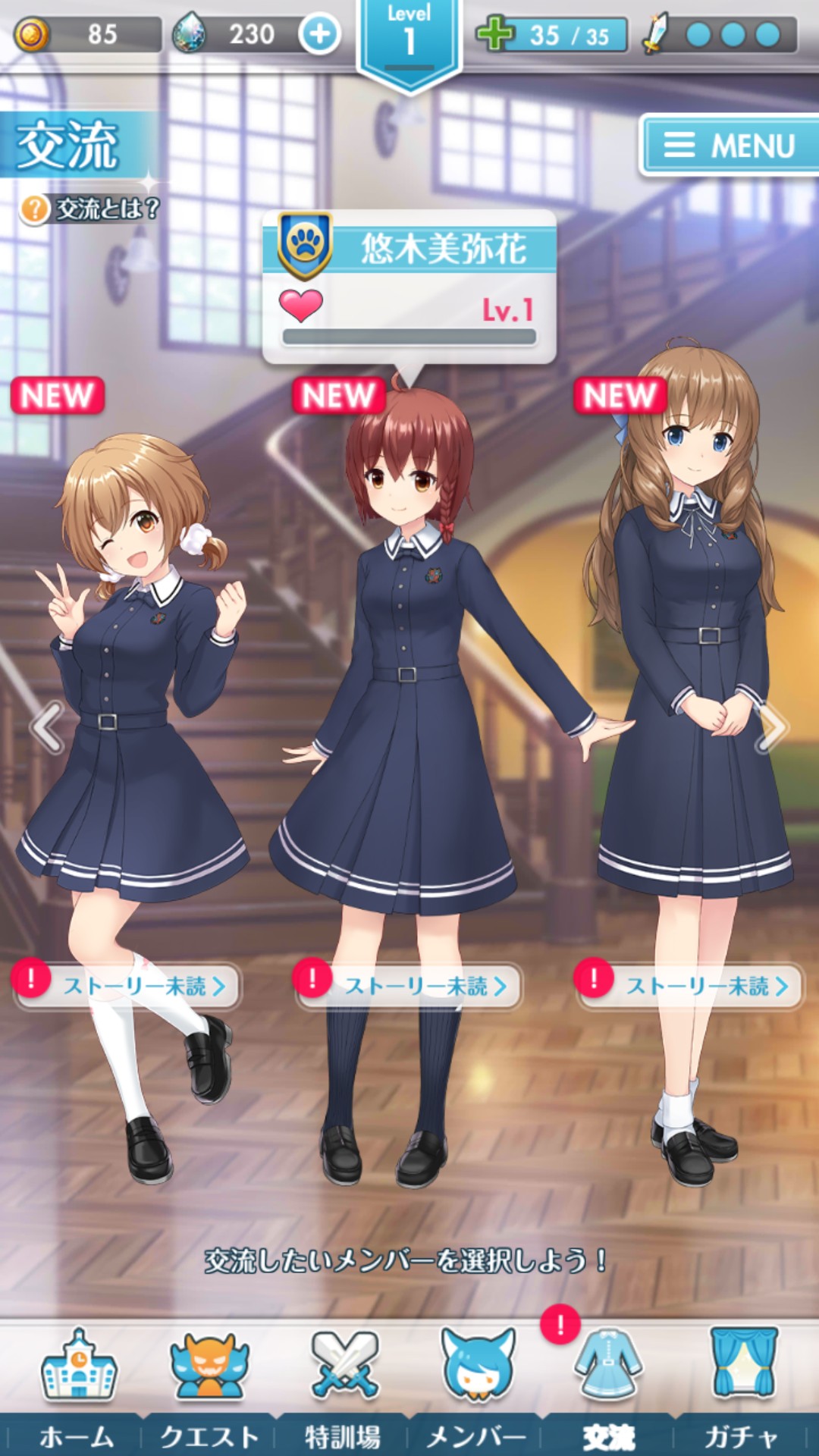 メインクエストを進めながらメンバーとの交流や強化をして、新密度をあげてそれぞれのストーリーを開放していきましょう。