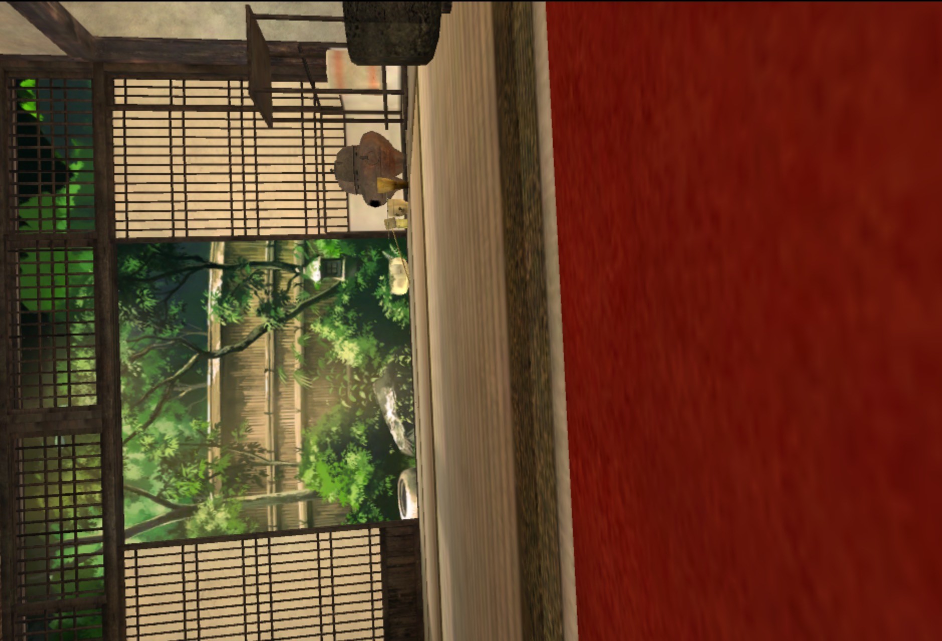 パッと画面が変わると、和室にいる状態です。畳や障子がなかなかリアルです。お茶道具や行灯みたいのもあります。iPadを持った状態でいろんな方向を見ると、景色が変わり、和室全体を見回せます。
