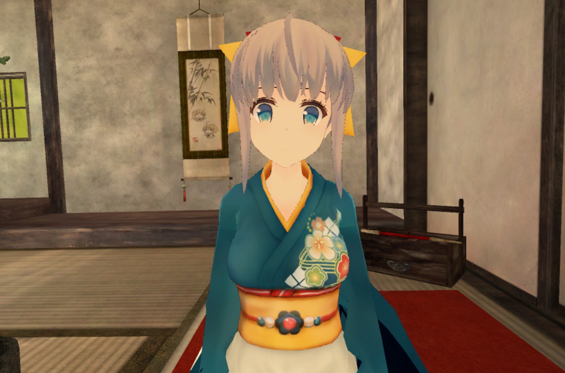 VRゲーム初体験でおぉ!と感嘆していると、右側になごみちゃんが座ってました。和装少女は良いですね。