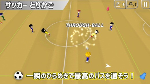 とりかごはサッカーで遊ぶ簡単操作の面白いゲームです。サッカーは個人技だけでなくパスワークも上手にならないと試合で勝つことができません。このゲームはボールをゴールに叩き込んで勝つような