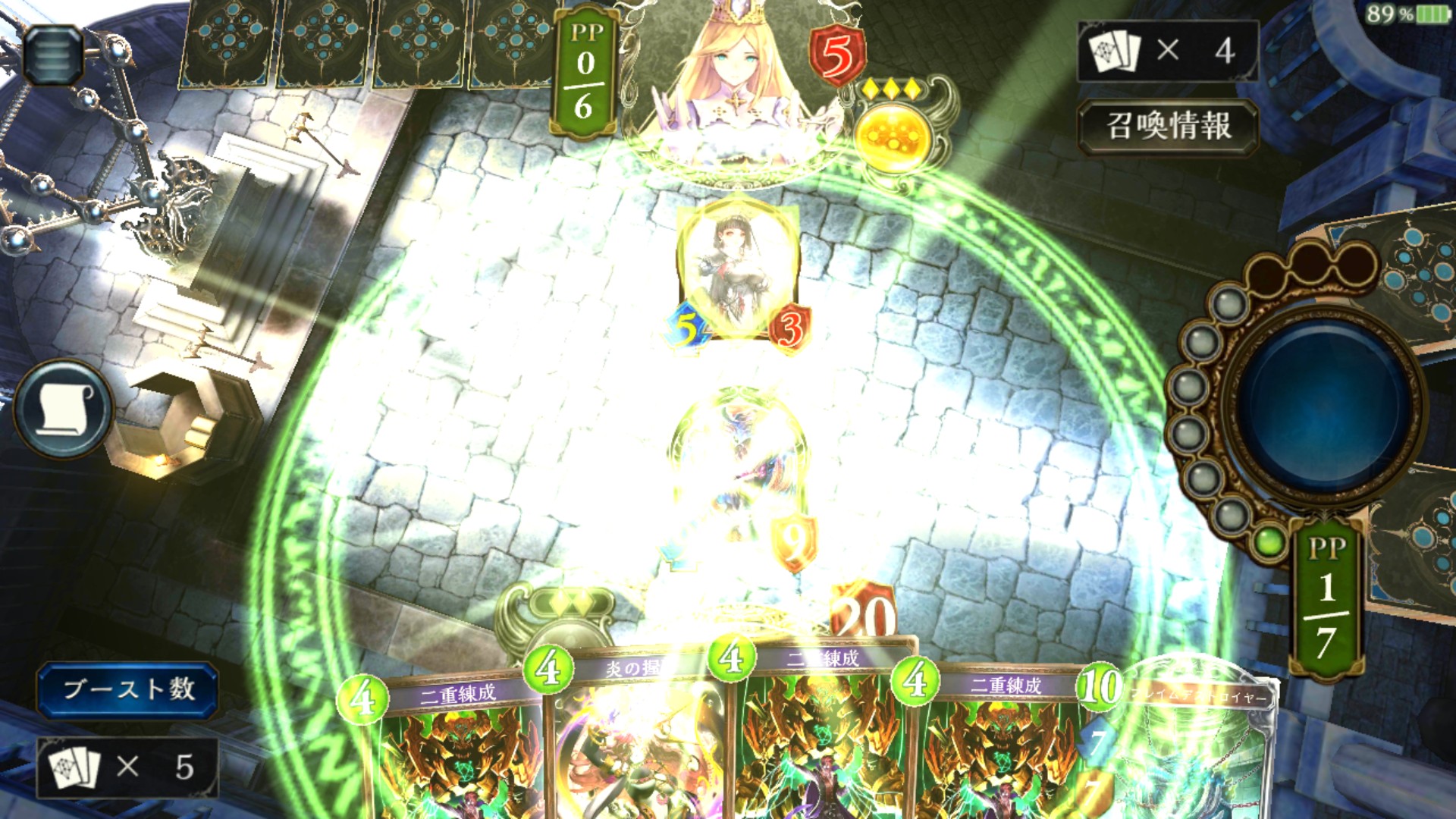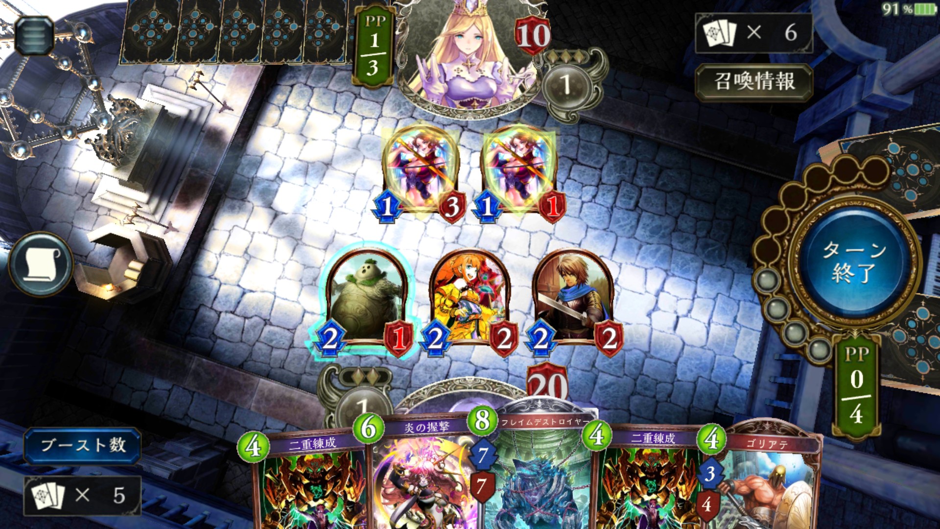 1ターンごとにPPが増えていくので、それを消費して自分の手持ちのカードを場に出していきます。