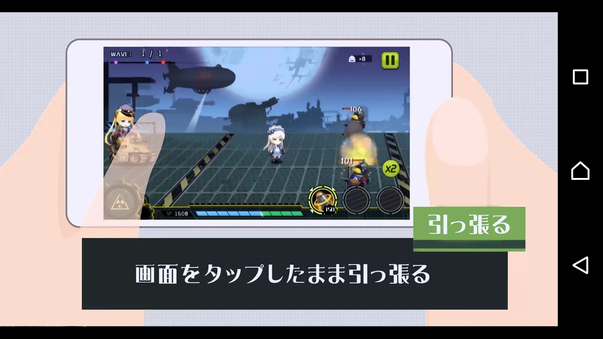 「戦場のツインテール」には親切なチュートリアルがついています。まずはそのとおりに行動して、ひととおりの流れを覚えましょう。次々と指示が出て混乱するかもしれませんが、自由に行動できるようになったらいろいろ試してくてください。