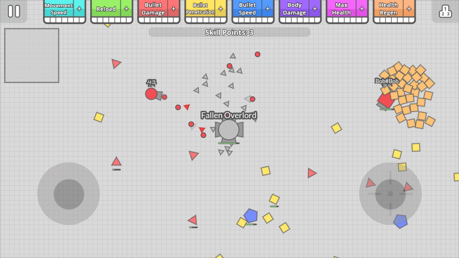 攻撃するのは移動に慣れてからでもいいでしょう。一通り覚えたら、四角<三角<五角の順で硬いので、まずは黄色い四角を狙っていきましょう。