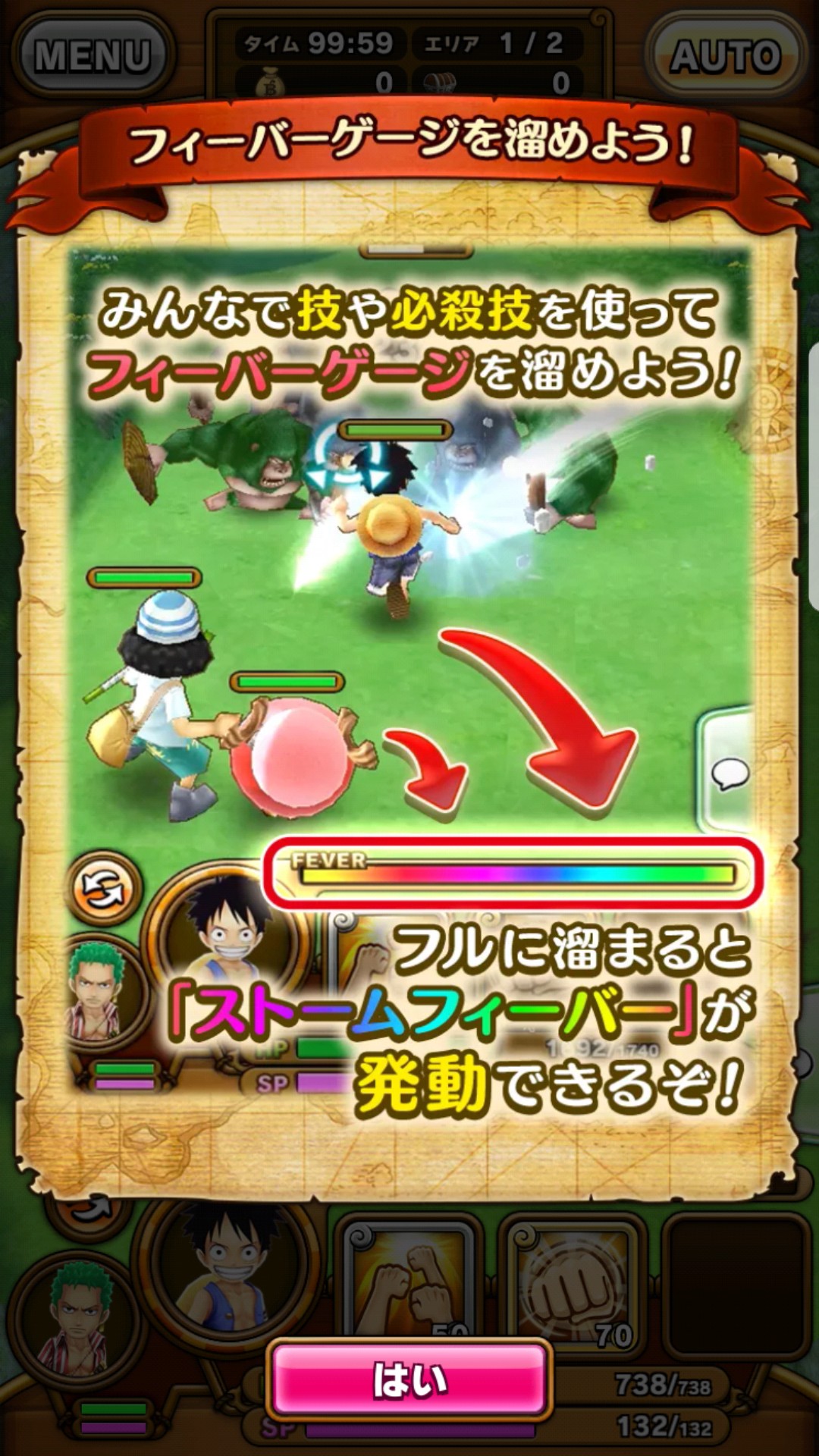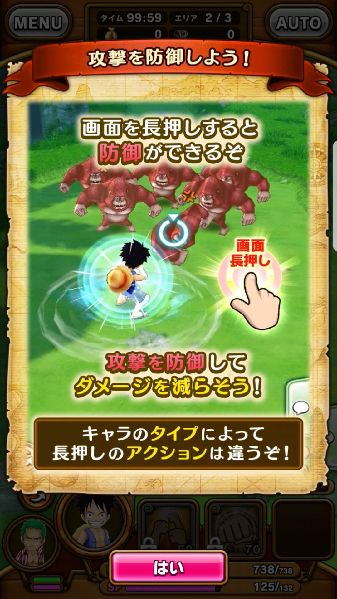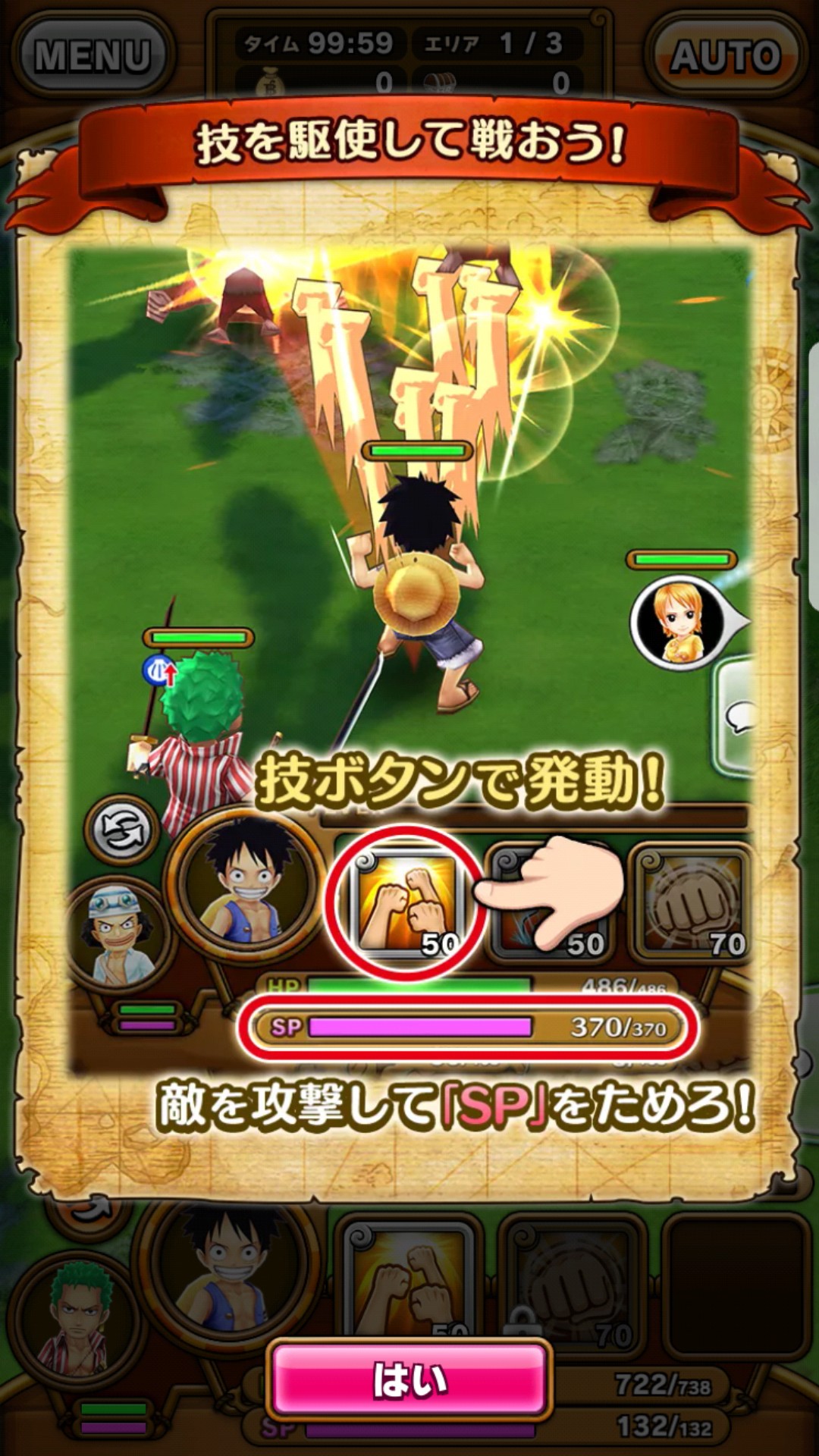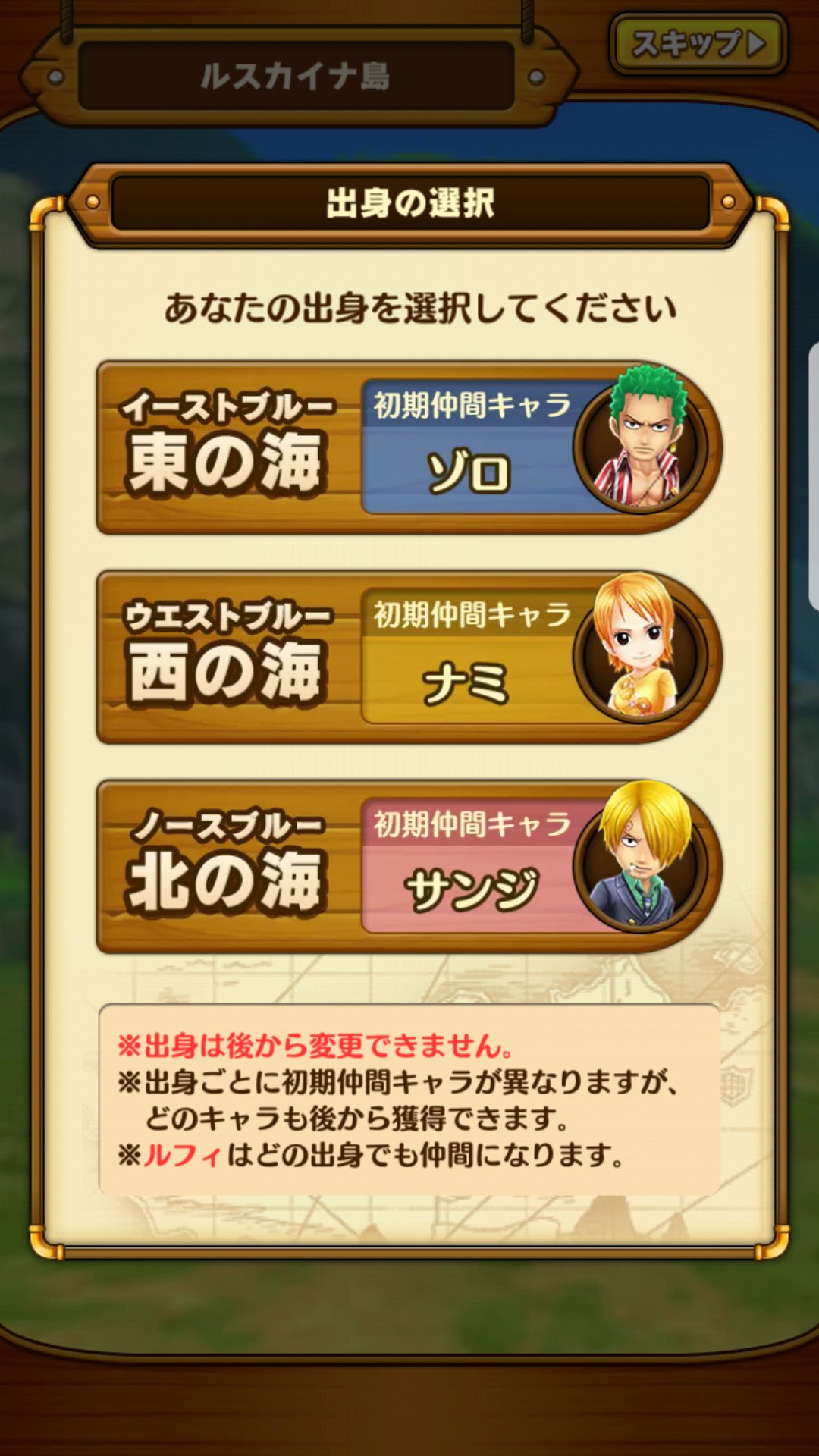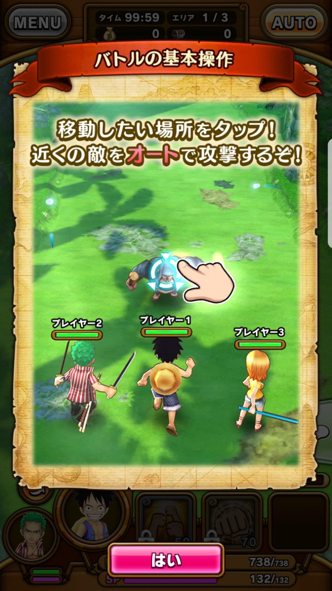 プレイヤーはルフィとルフィの仲間を1人を相棒にして冒険が始まります。