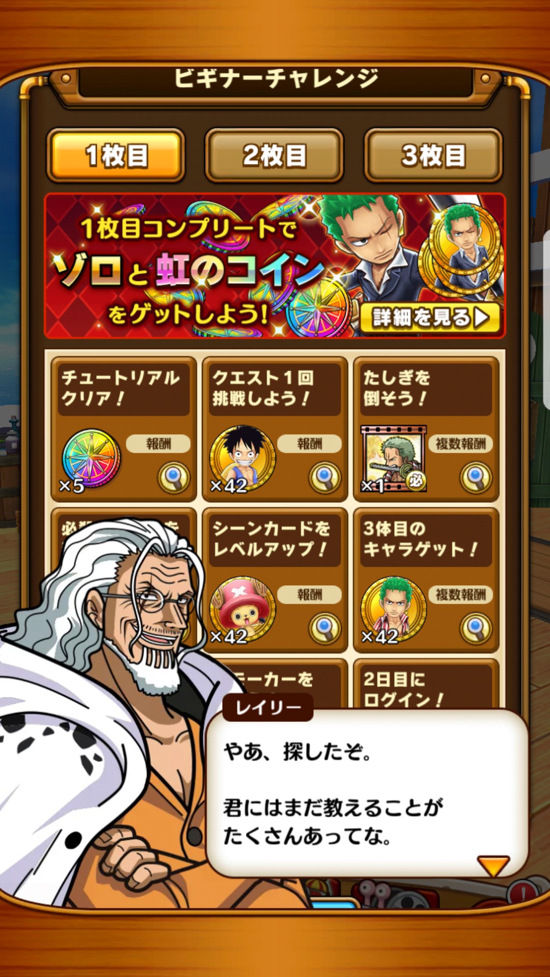 これらのミッションをクリアしていく事でガチャを引く際に必要な虹のコインやキャラメダル、シーンカード、ベリーと