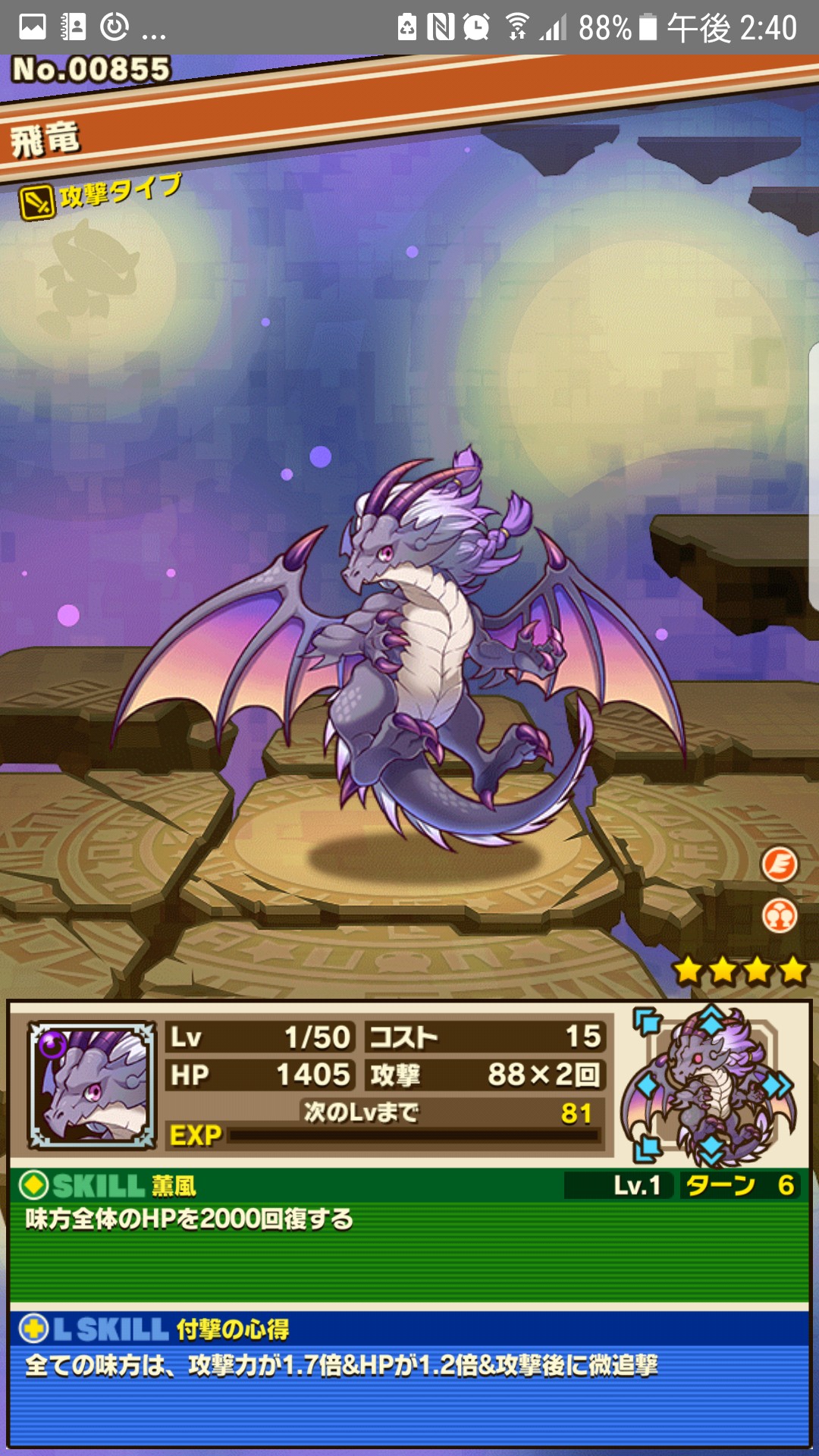 飛龍は攻撃の後一定の固定ダメージを与えれるスキル「追撃」を持っているので序盤に大変役立ちます。ぜひ手に入れてください