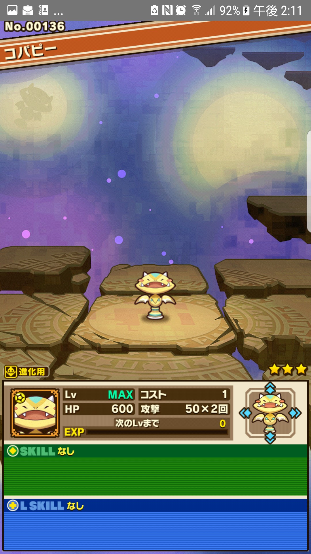 ピクシーは進化することで、属性によってスキルが変わりますが、「獲得コイン量が2倍」「獲得経験値1、5倍になるリーダースキルを手に入れます。
