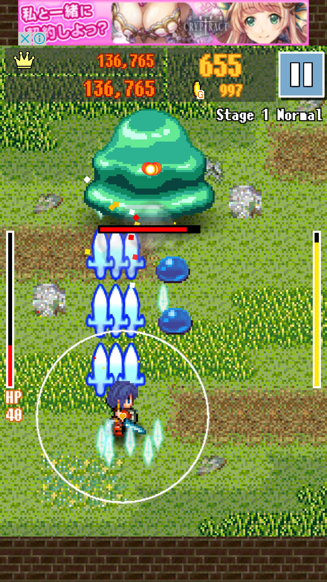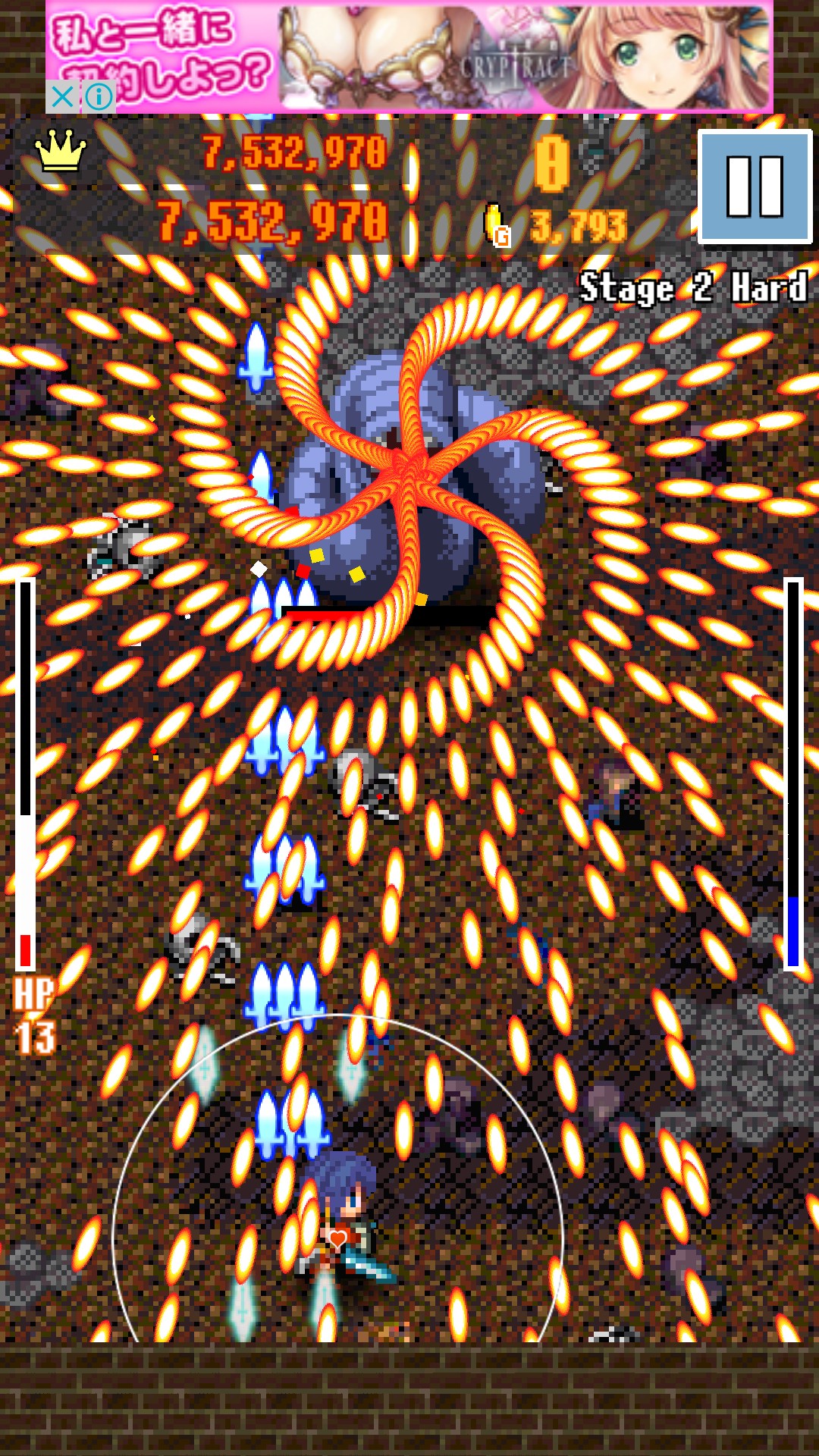 勇者を移動させたい場合は、移動したい方向にスライドさせるだけなので直感で弾幕を避けていけます。