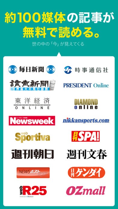 このニュースアプリでは、100を超える媒体から毎日ニュースが提供されます。