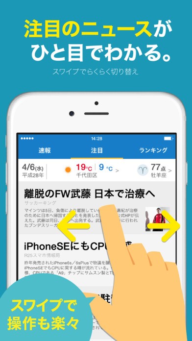 他にもスポーツに関するニュースであったり、アプリやスマホに関するニュースなども見られます。