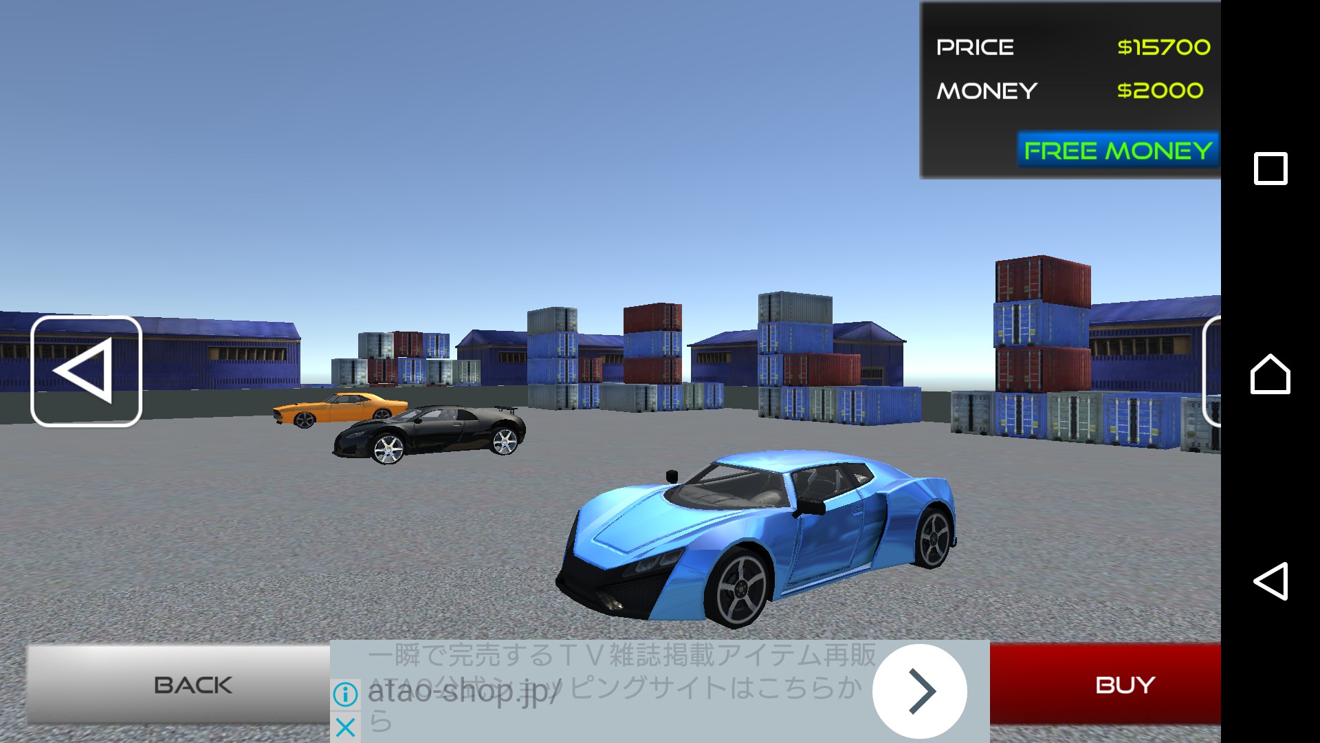 こうして、ミッションをクリアするごとにまた新しく解放されるミッションを進めていき、お金を貯めると、また新しい車が買えるようになります。おそらくは少しずつスペックが上がっていくのでしょう。