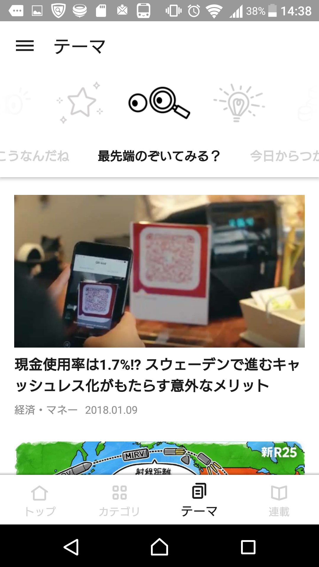 1日の配信量が多くライトな話題が中心で、記事はカテゴリごとに分けられているため煩雑ではなくスッキリとしていて見やすいので使い勝手も良く、移動中や待ち時間などの手隙の時間に読むには最適です。
