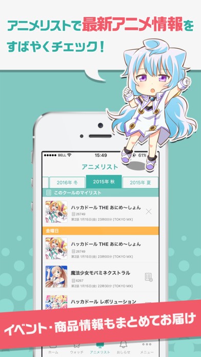 これを使えば新しいクールのアニメ一覧情報が表示され、出演声優、関連作品などの詳しいアニメ情報が見られます。