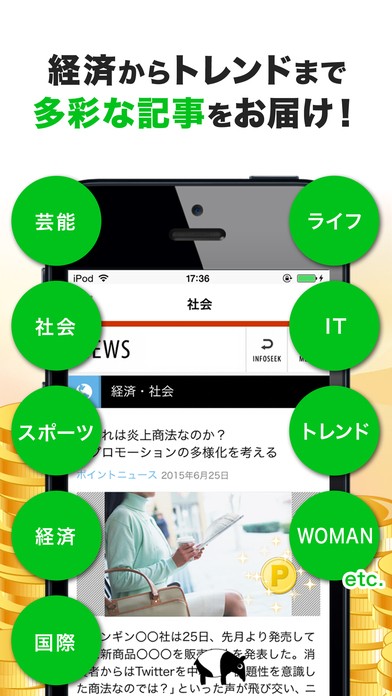 通勤・通学時間などの隙間時間にニュースをチェックしながら、ついでにお小遣いもゲットできるという、ニュースをよく確認する人にはもってこいのニュースアプリです。
