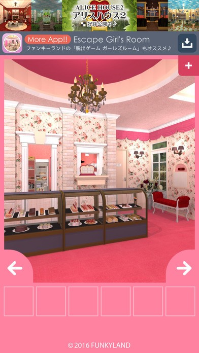 他の脱出ゲームと同じく、部屋を探索し、アイテムを発見して謎を解き、部屋(今回はケーキカフェ)から脱出します。