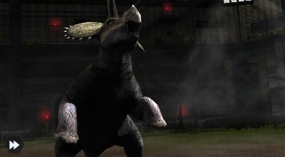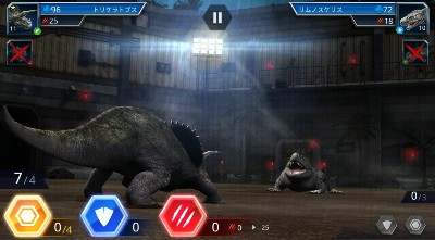 赤色のボタンをタップすると、恐竜に「攻撃」の指示を与えます。