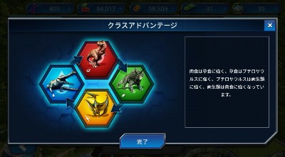 肉食は草食に強く、草食はプテロサウルスに強く、プテロサウルスは両生類に強く、両生類は肉食に強くなっています。恐竜の属性を考えてバトルに配置すると、バトルで勝利しやすくなっています。恐竜の属性も考えながら、恐竜をバトルに参加させましょう!