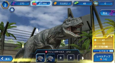 パーク内で恐竜にエサを与えると、恐竜がレベルアップしていきます。恐竜がレベルアップすると、恐竜のパラメーターが上がっていきます。これで強敵な恐竜相手にも、バトルで勝利できるかもしれません!パークで恐竜にエサを与え恐竜の世話をして、恐竜をレベルアップしていきましょう!