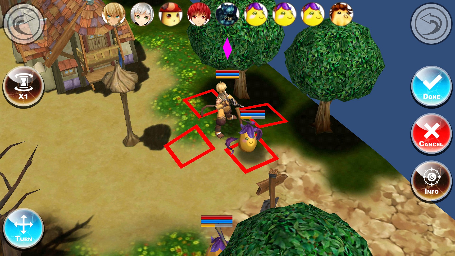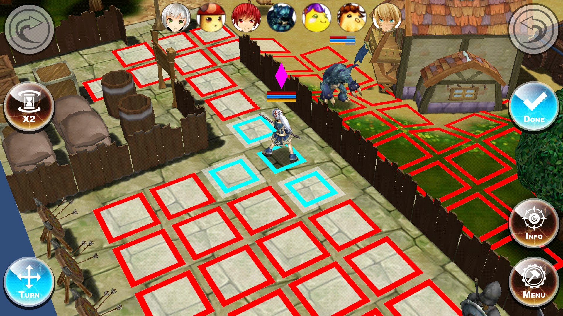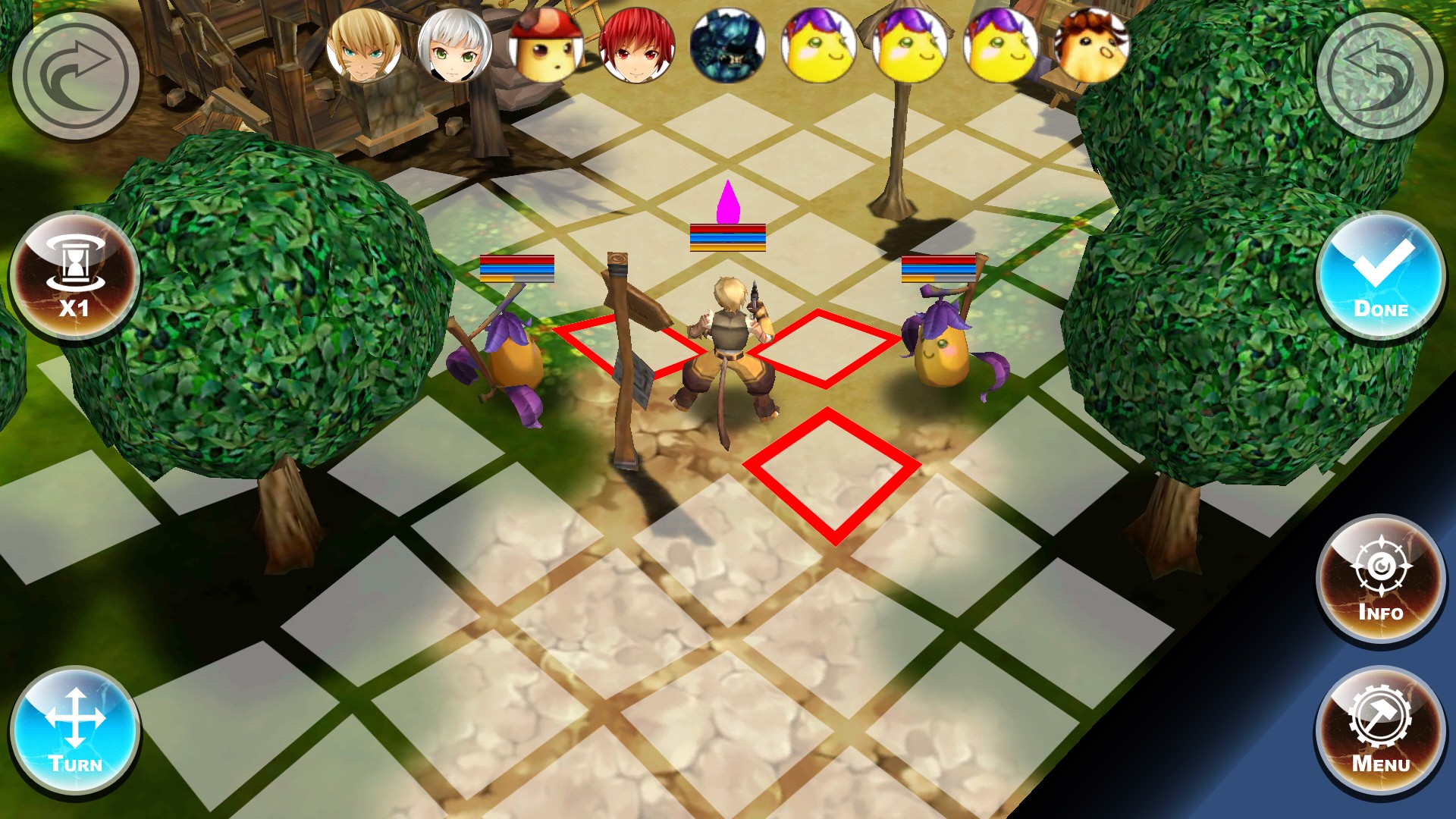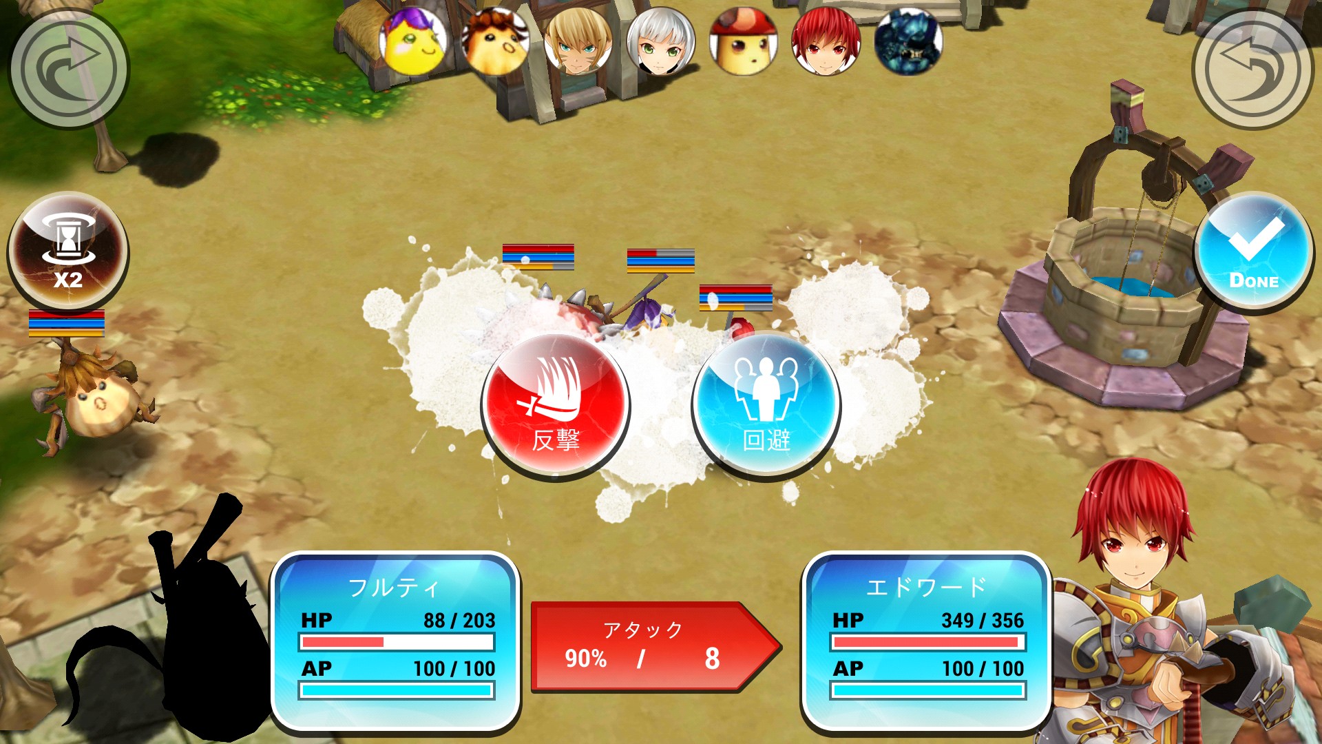 次に攻撃できる範囲である赤いマスにいる敵をタップします。