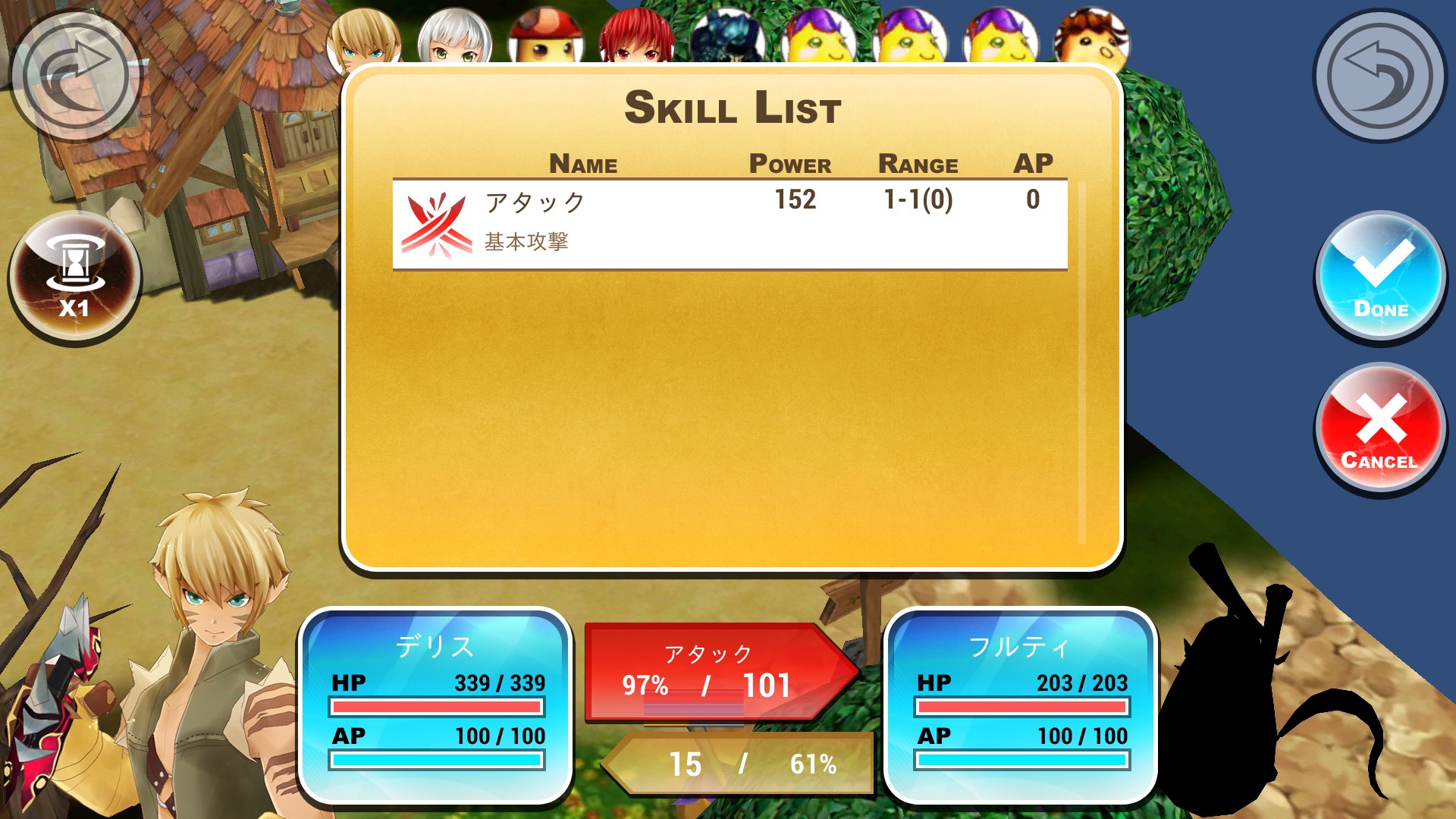 敵をタップするとスキルリストが開き、どれを使用するか選択したら確率の数値が見えますよ。