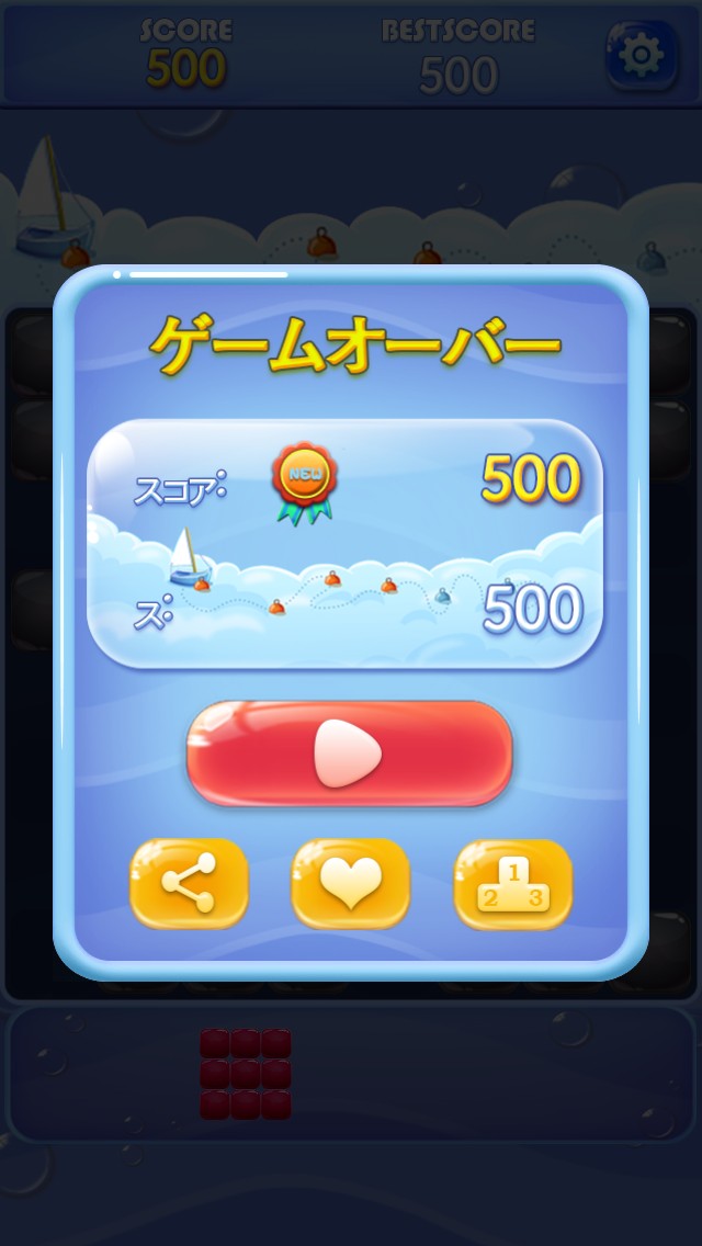 最初は中々思うようにキャンディを消せずに、すぐにゲームオーバーになってしまうかもしれませんが、やっていくうちに段々コツを掴んでいき、ブロックの置き方や点数の伸ばし方などもわかっていきます。