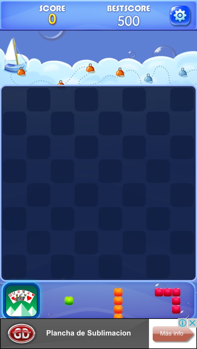 ブロックを置くと、置いたブロックのキャンディの数が点数としてもらえます。また、縦か横一列にブロックが並ぶと、その列のキャンディは消えて10点が点数がもらえます。