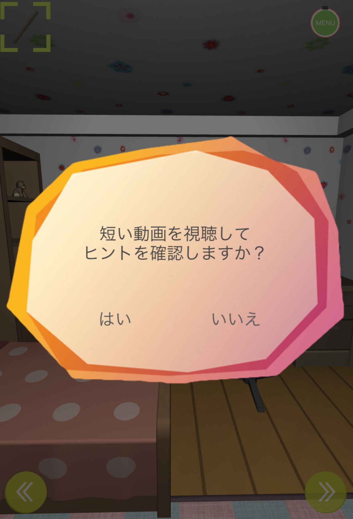 MENUボタンの先の「ヒントを見る」ボタンをタップするとヒントを確認するメッセージが出てきます。