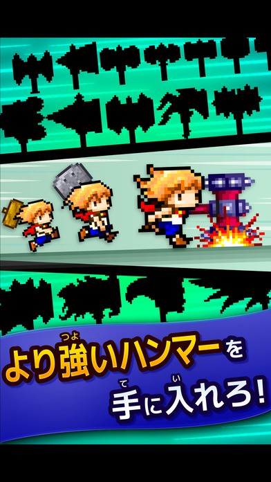 バトルは横スクロール型でプレイヤーはオートで左から右へと移動します。道中には敵がいますので、画面をタップしてハンマーを叩きつけましょう。豪快なアクションは見ていて気持ちよくなります。