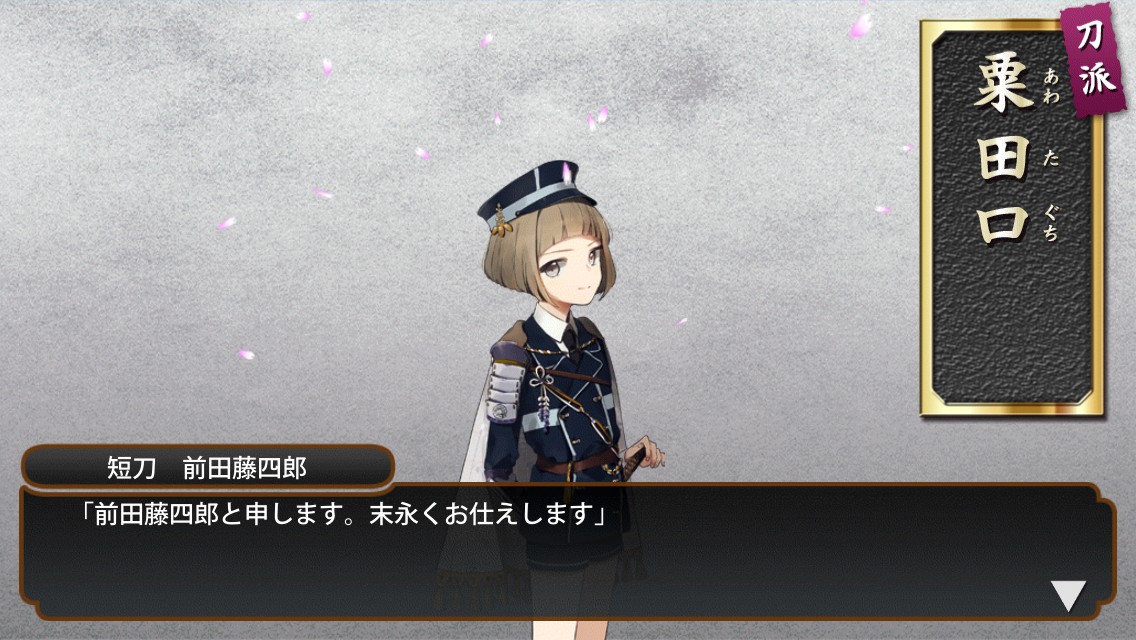 本作には、いわゆるガチャは存在しません。その為、キャラクターを入手する方法は、鍛刀で新しく刀剣を作成するか、合戦場でのドロップを狙うかの2通り、