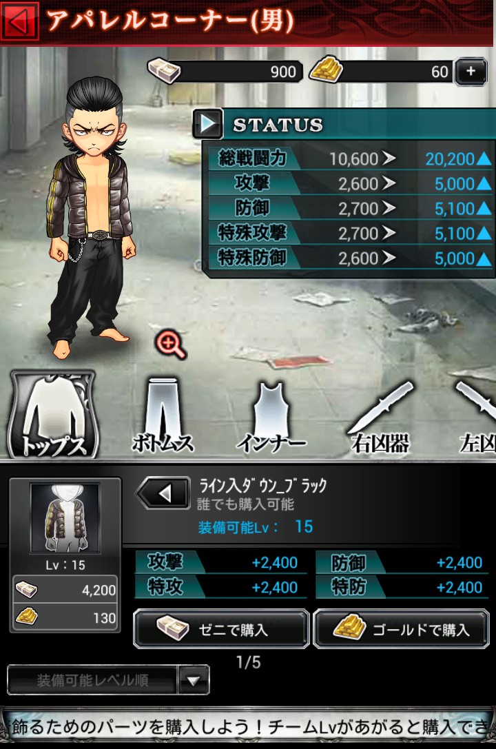 服装にはステータスが設定されており、自身の強化も兼ねています。