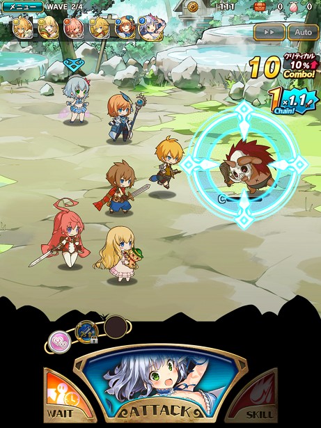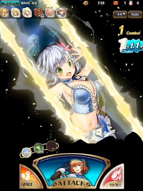 攻撃する時に下の「Attackボタン」や「Skillボタン」をタイミング良くタップすると、コンボがつながるようになっているんですよ。